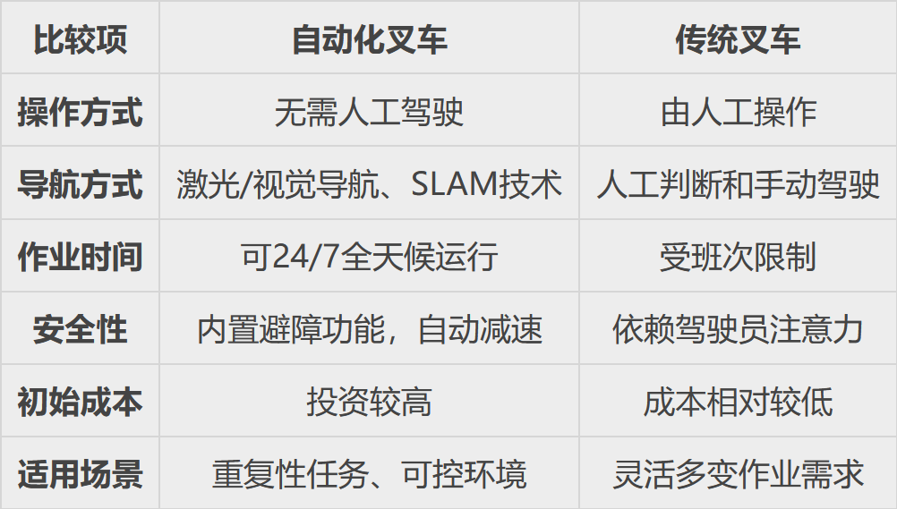 自动化叉车与传统叉车的主要区别